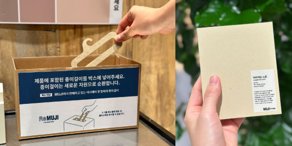 지구를 사랑하는 ESG 활동 (종이 걸이 회수 또는 장바구니 이용) 시 회수한 종이 걸이로 만들어진 이어지는 노트를 증정해 드립니다.