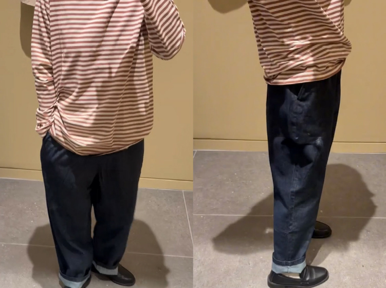 이지팬츠의 여유 있는 핏이 더해져 데님 소재임에도 자연스럽게 떨어지는 실루엣을 완성하고, 하루 종일 부담 없이 착용할 수 있어요.