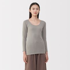 여성 따뜻한 면 크루넥 긴소매 티셔츠