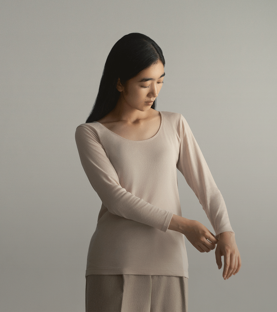 여성 따뜻한 면 U넥 8부소매 티셔츠