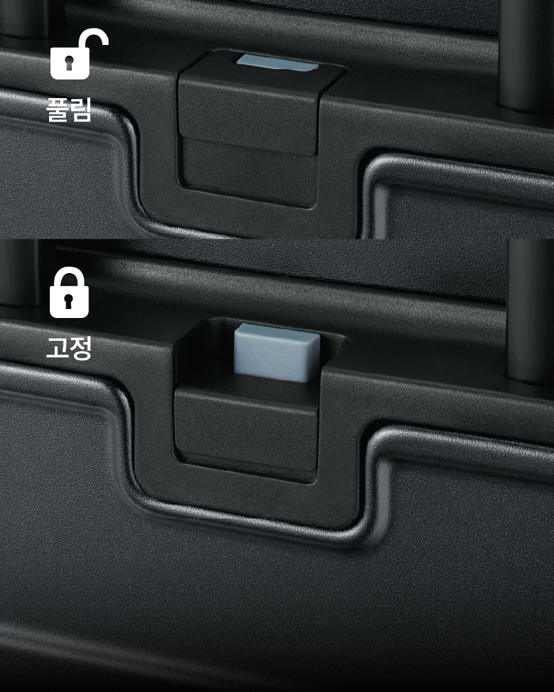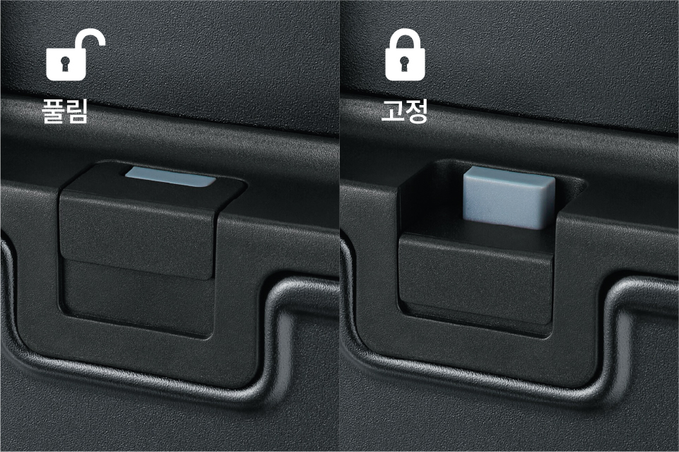 뒷면의 스토퍼 버튼으로 필요할 때 간편하게 움직임을 고정할 수 있습니다.