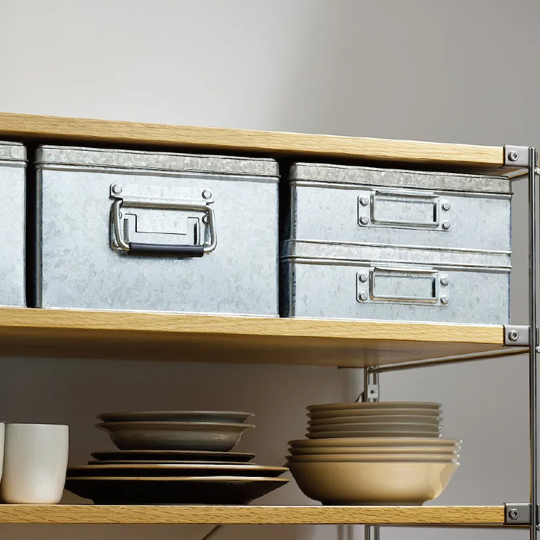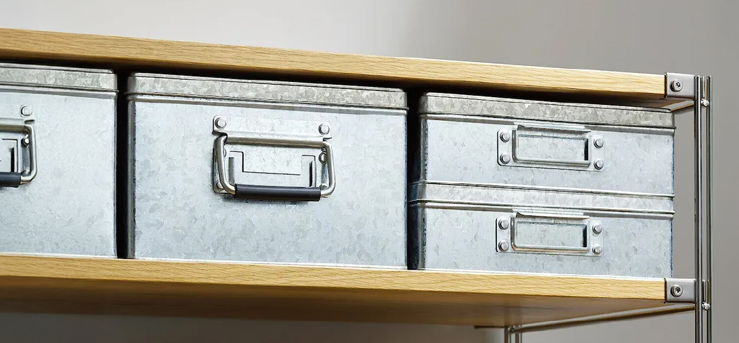 튼튼한 함석 소재로 층층이 쌓아도 흐트러짐 없는 안정적인 수납 공간을 제안합니다.
