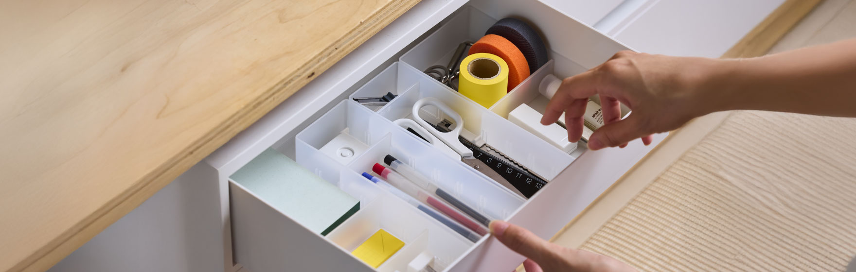 다양한 종류의 수납 케이스로 정리해 보세요.