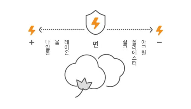 화학 섬유나 다른 소재는 서로 정전기가 일어나기 쉬운 성질을 가지고 있습니다. 그에 비해 면은 정전기가 잘 일어나지 않고, 울 소재의 니트를 겹쳐 입어도 정전기가 잘 일어나지 않는 소재입니다.