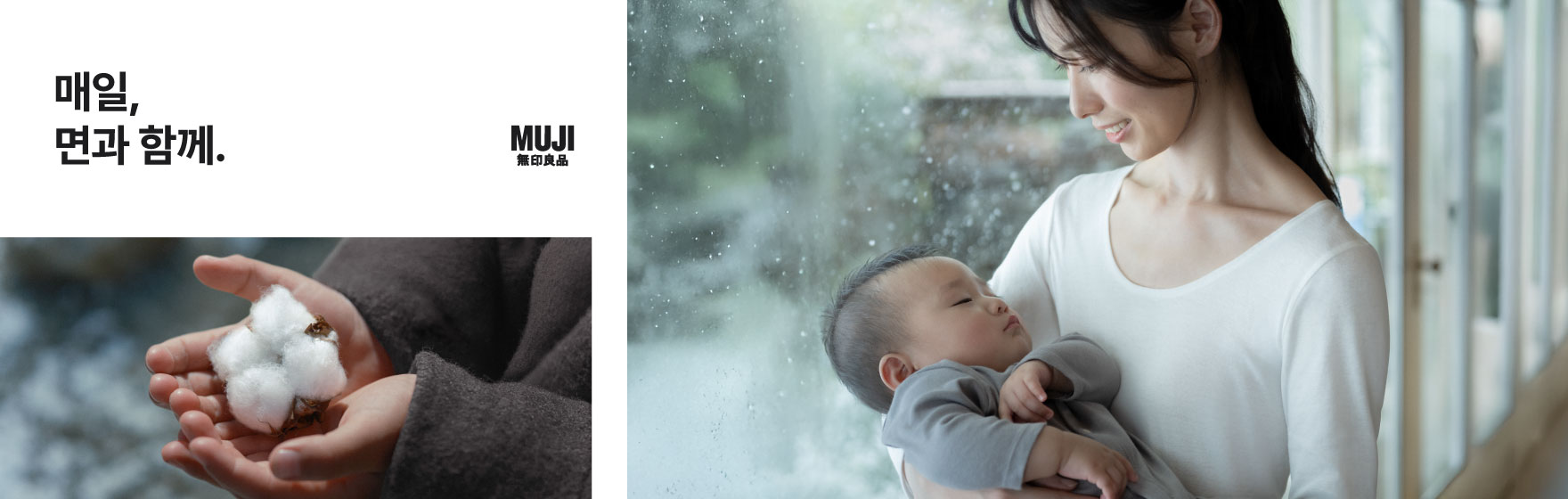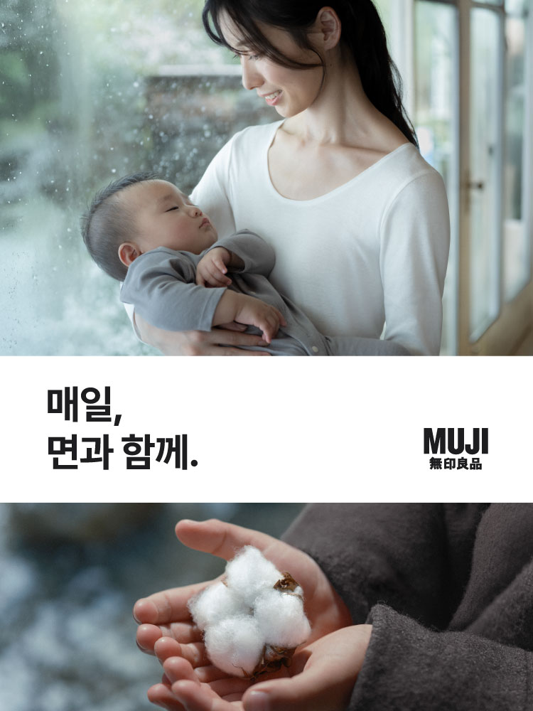 면은 화학 섬유 소재에 비해 피부 유분을 과도하게 흡수하지 않아 건조해지기 쉬운 겨울 피부에 친화적인 소재입니다.