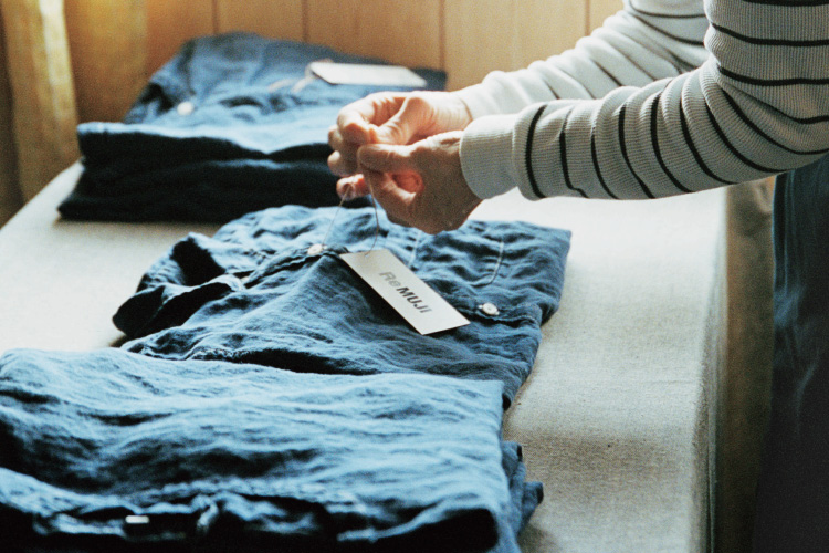 더 이상 입지 않는 무인양품의 옷을 회수하고 있습니다.