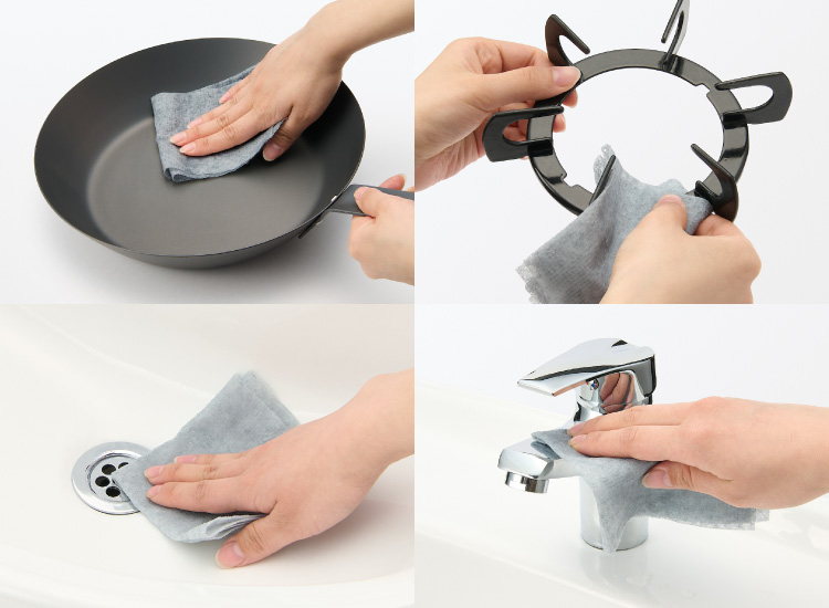 우리 집 필수 아이템, 오염용 청소 시트! 세제/연마제 없이 물로 적셔 사용할 수 있습니다.