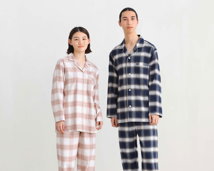 사이드 심리스 플란넬 긴소매 파자마