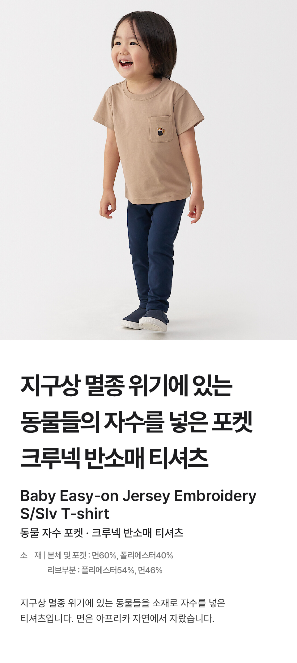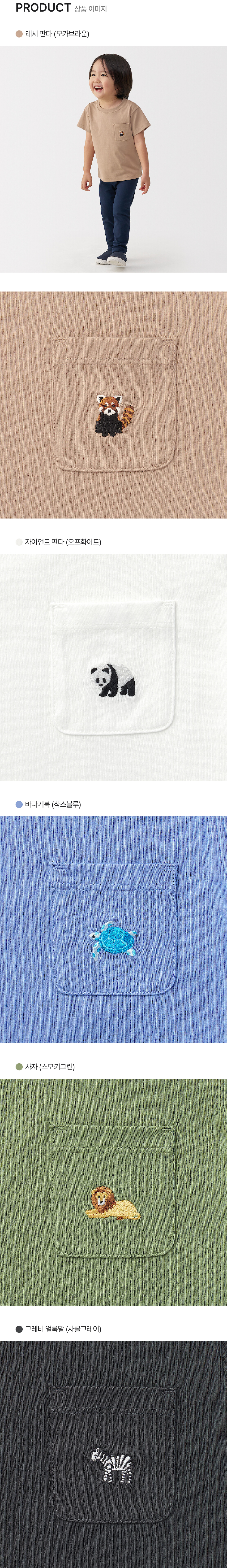 베이비 동물 자수 포켓 크루넥 반소매 티셔츠/CC25WA5S