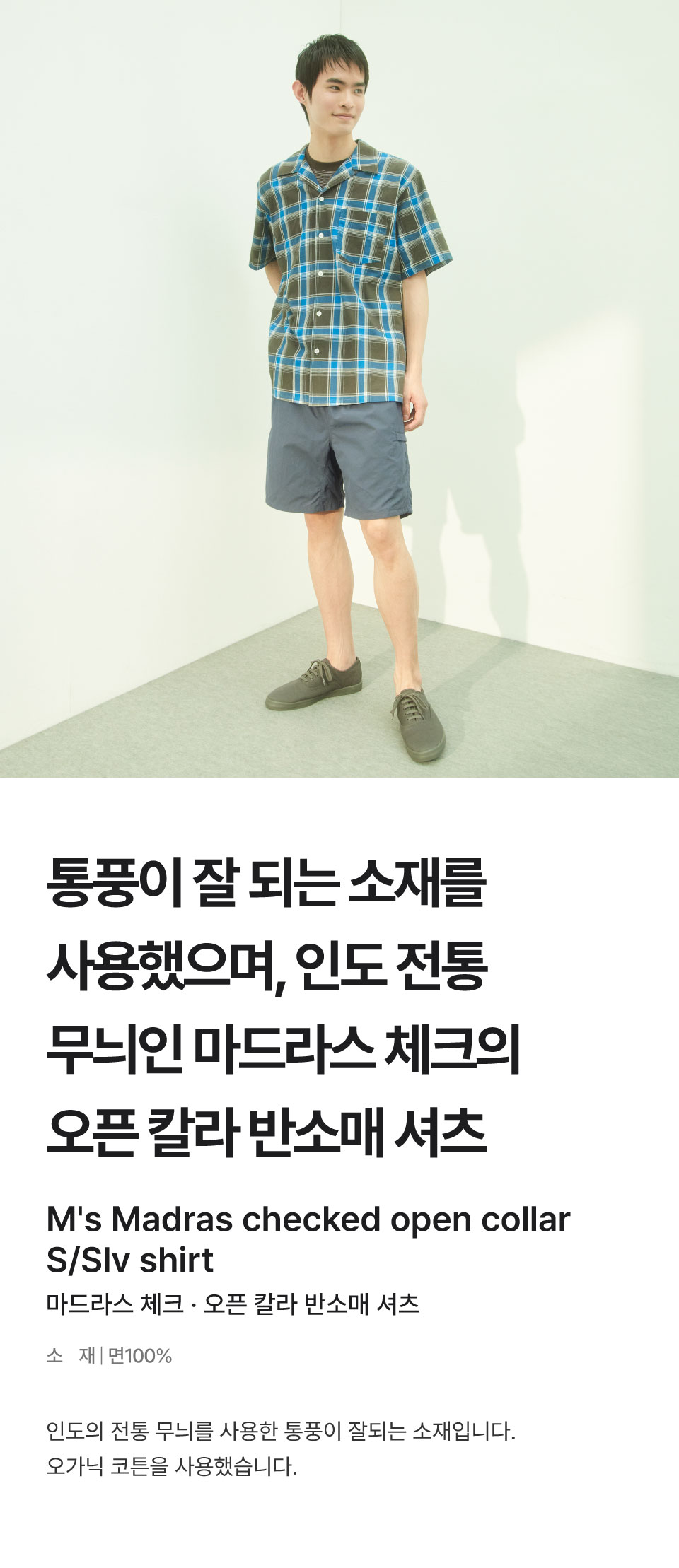 마드라스 체크 오픈 칼라 반소매 셔츠/AC21FA5S