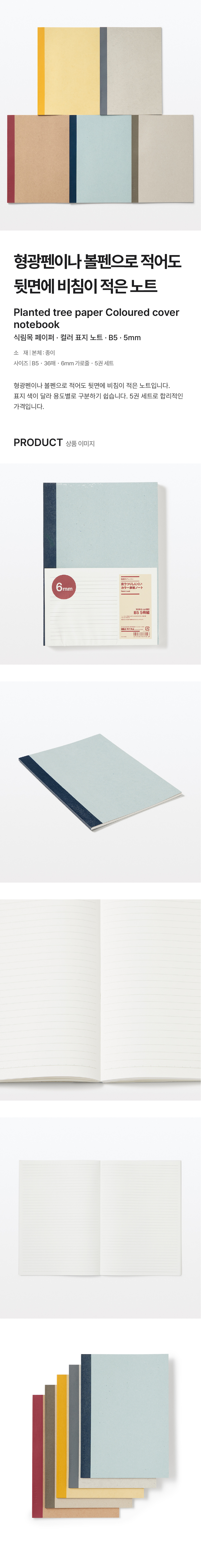 B5・36매・6mm 가로줄・5권 세트