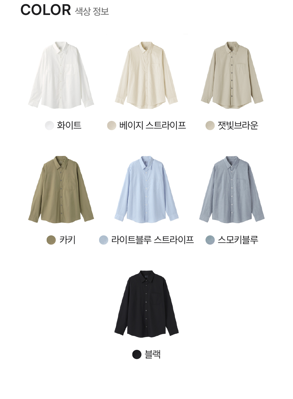 라이트블루 스트라이프,카키,스모키블루,잿빛브라운,베이지 스트라이프,화이트,블랙