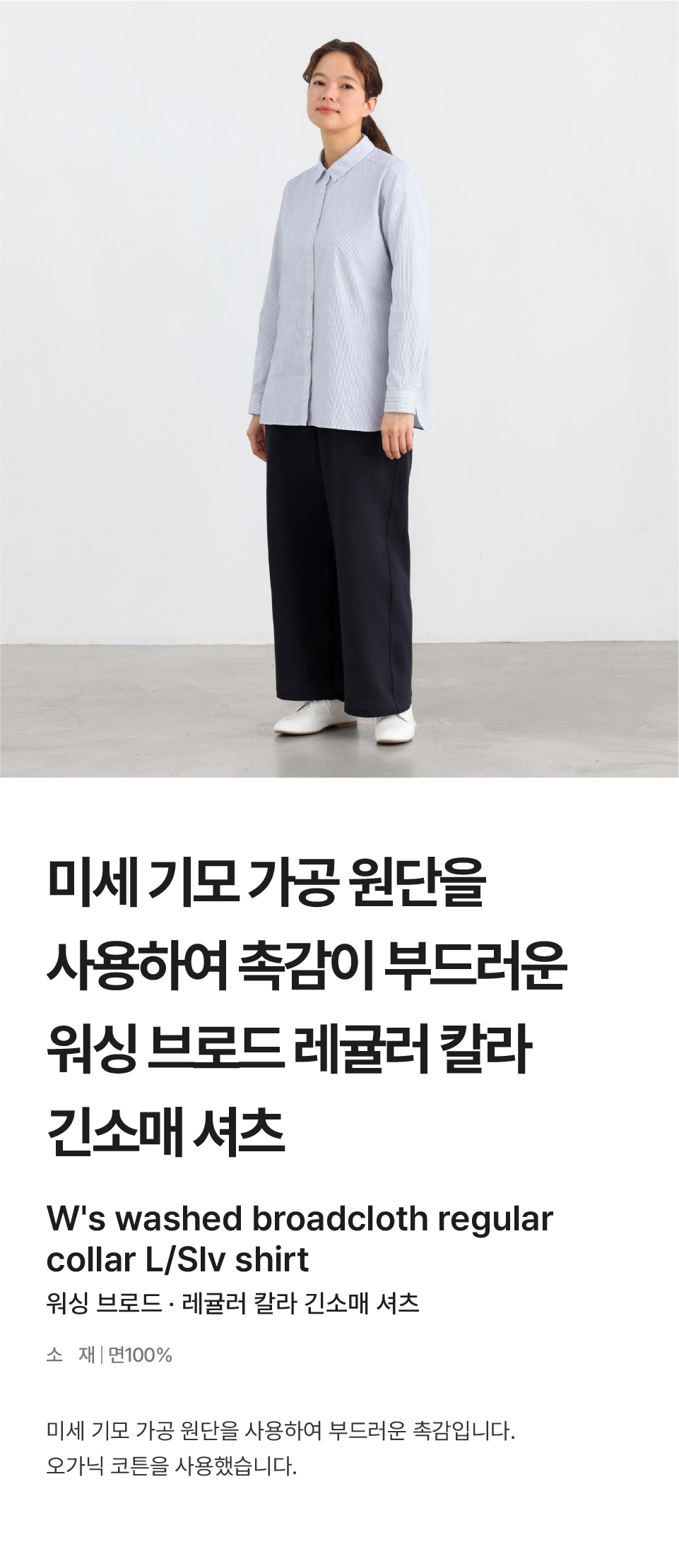워싱 브로드 레귤러 칼라 긴소매 셔츠