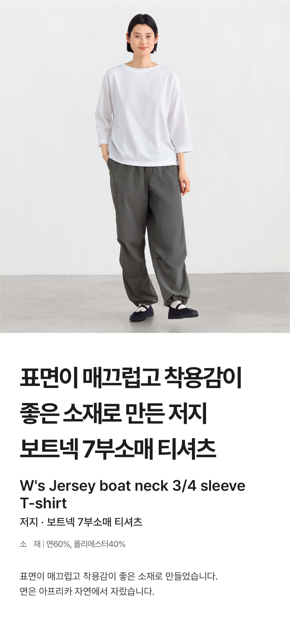 저지 보트넥 7부소매 티셔츠/BB2PVA5A