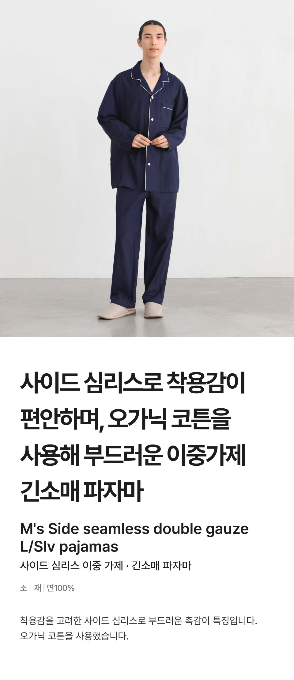 남성 사이드 심리스 이중 가제 긴소매 파자마/FB0YDA5A
