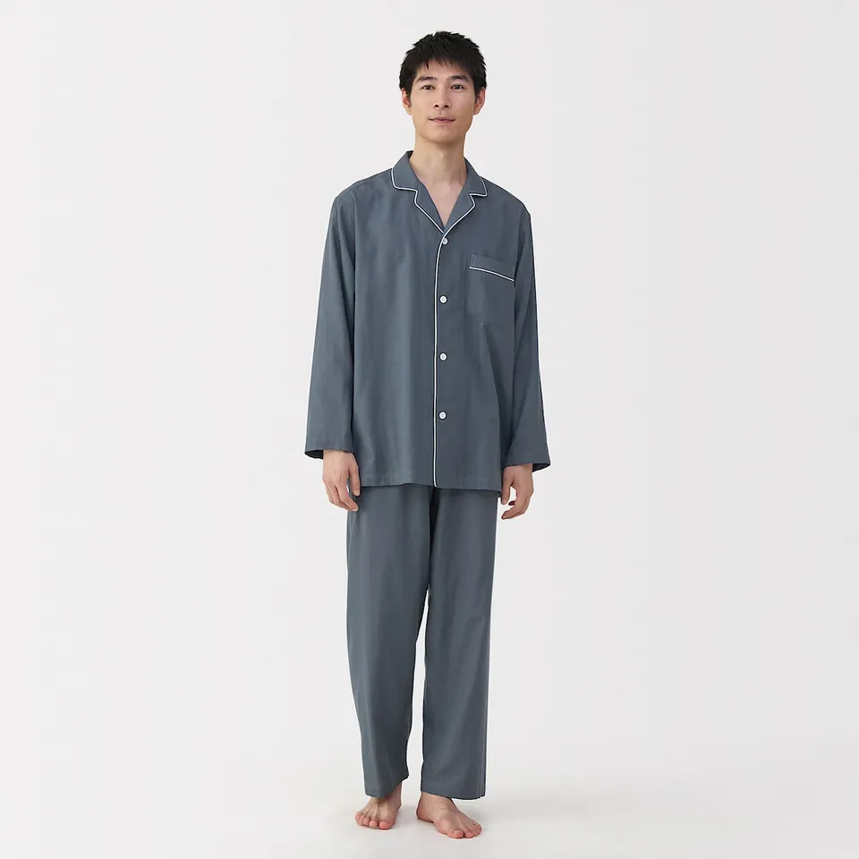 남성 사이드 심리스 이중 가제 긴소매 파자마/FB0YDA5A