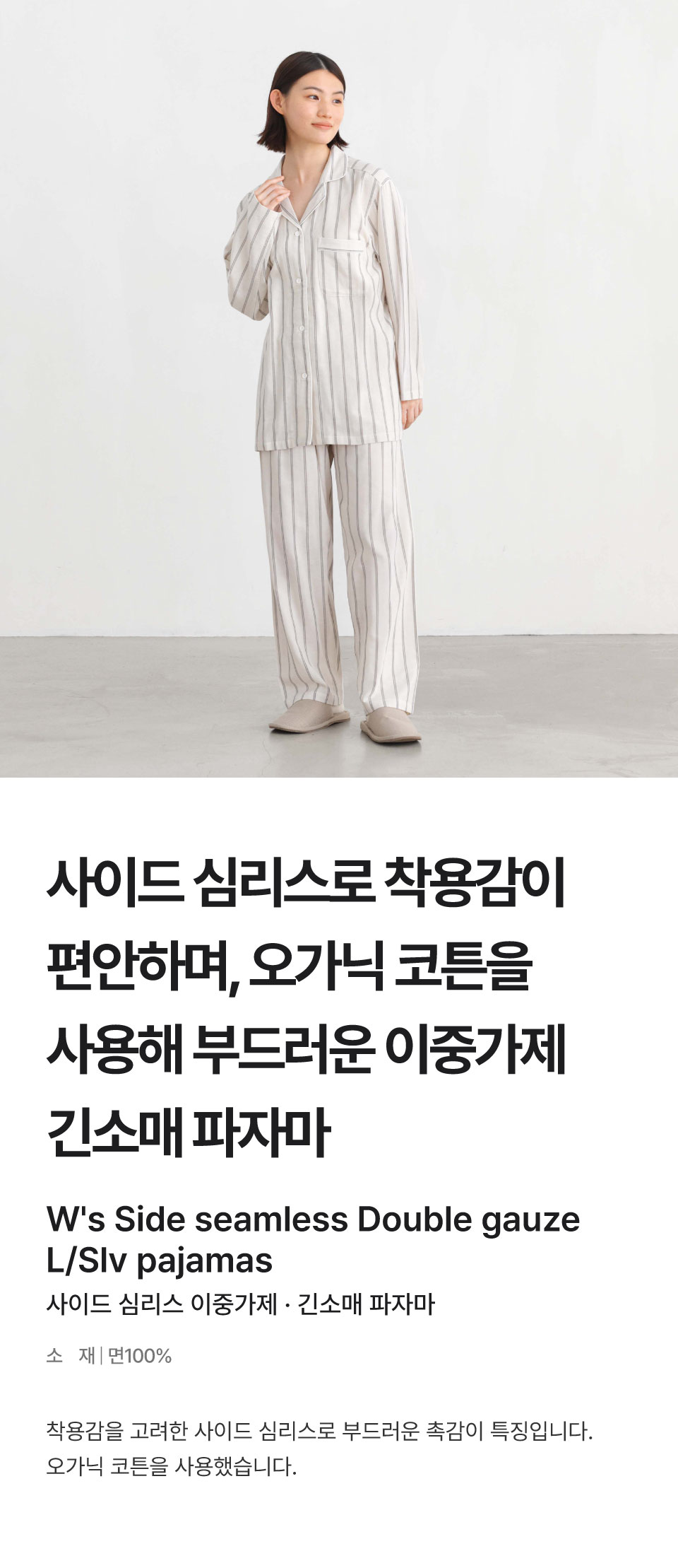 여성 사이드 심리스 이중가제 긴소매 파자마/FD1LUA5A