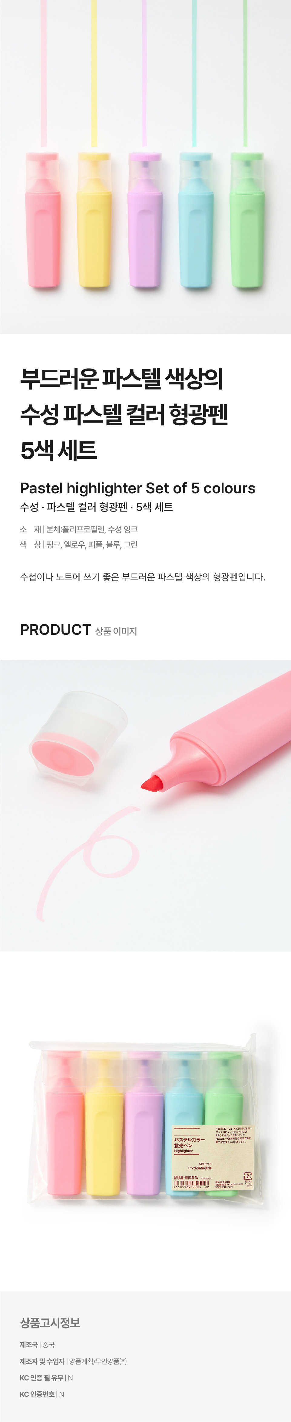 수성 파스텔 컬러 형광펜 ∙ 5색 세트/4550584434785