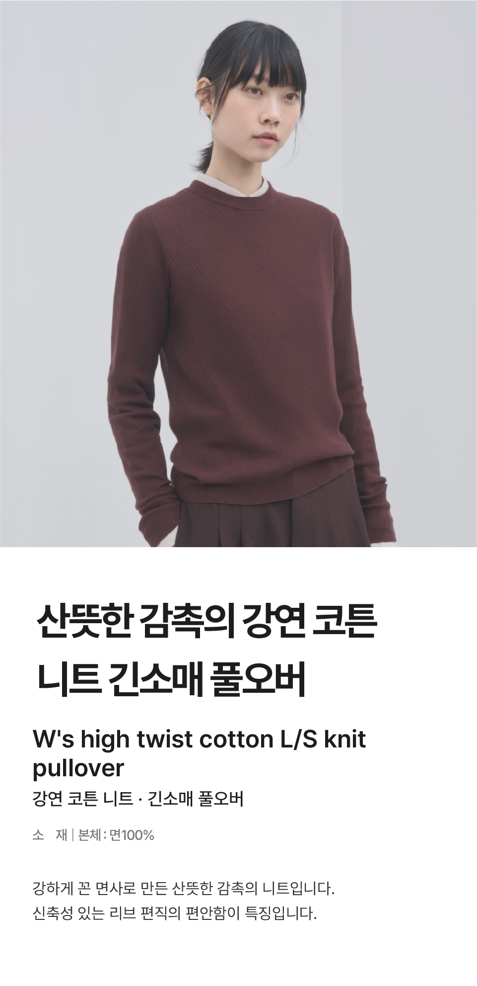 강연 코튼 니트 긴소매 풀오버/AF0D9A5A