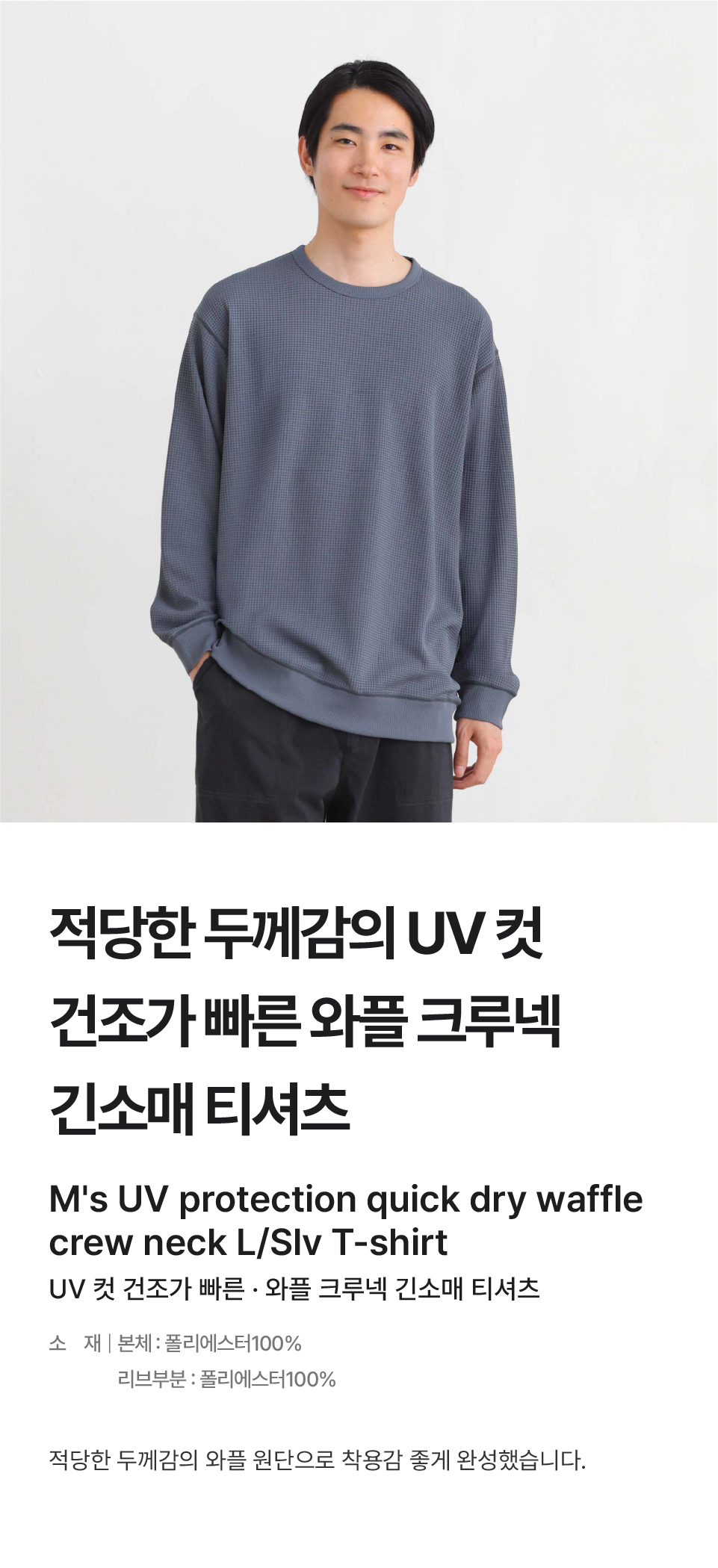 UV 컷 건조가 빠른 와플 크루넥 긴소매 티셔츠/AB1OHA5A