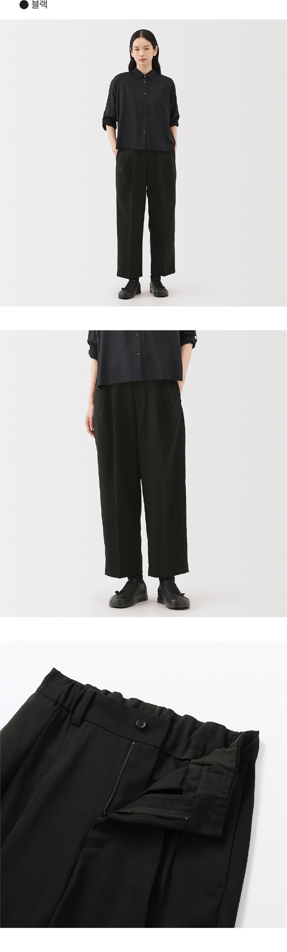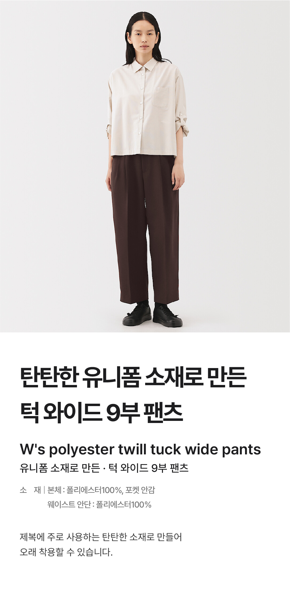 유니폼 소재로 만든 턱 와이드 9부 팬츠/AF0AHA5A