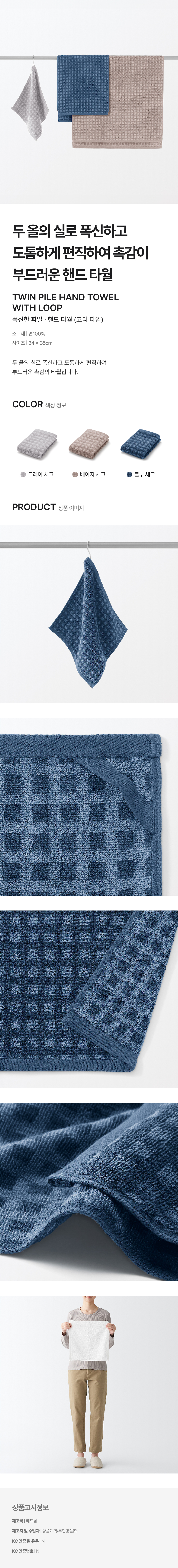 폭신한 파일 핸드 타월(고리 타입) 블루체크 34X35cm/4550584971266