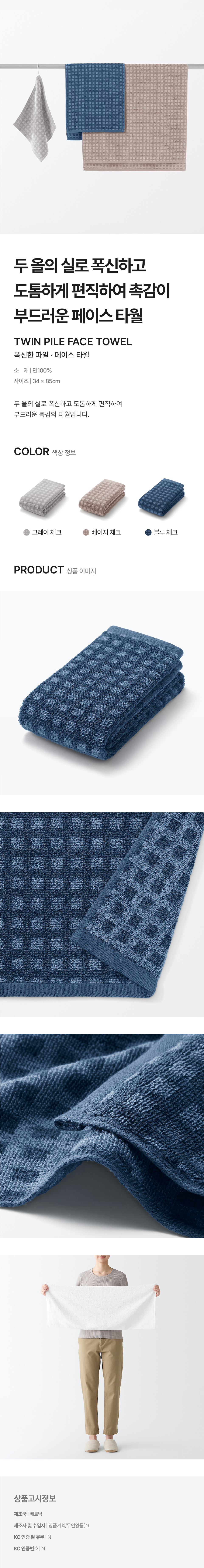 폭신한 파일 페이스 타월 블루체크 34X85cm/4550584971297