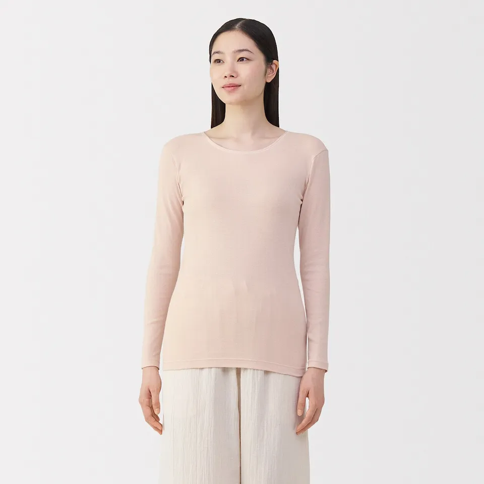 여성 따뜻한 면 크루넥 긴소매 티셔츠/FCD08A5A