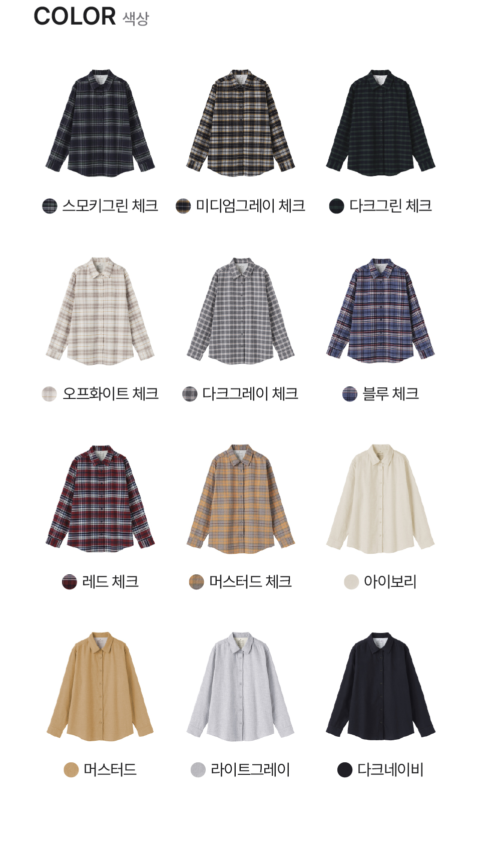 미디엄그레이 체크,다크그레이 체크,블루 체크,아이보리,스모키그린 체크,라이트그레이,레드 체크,오프화이트 체크,머스터드,머스터드 체크,다크그린 체크,다크네이비
