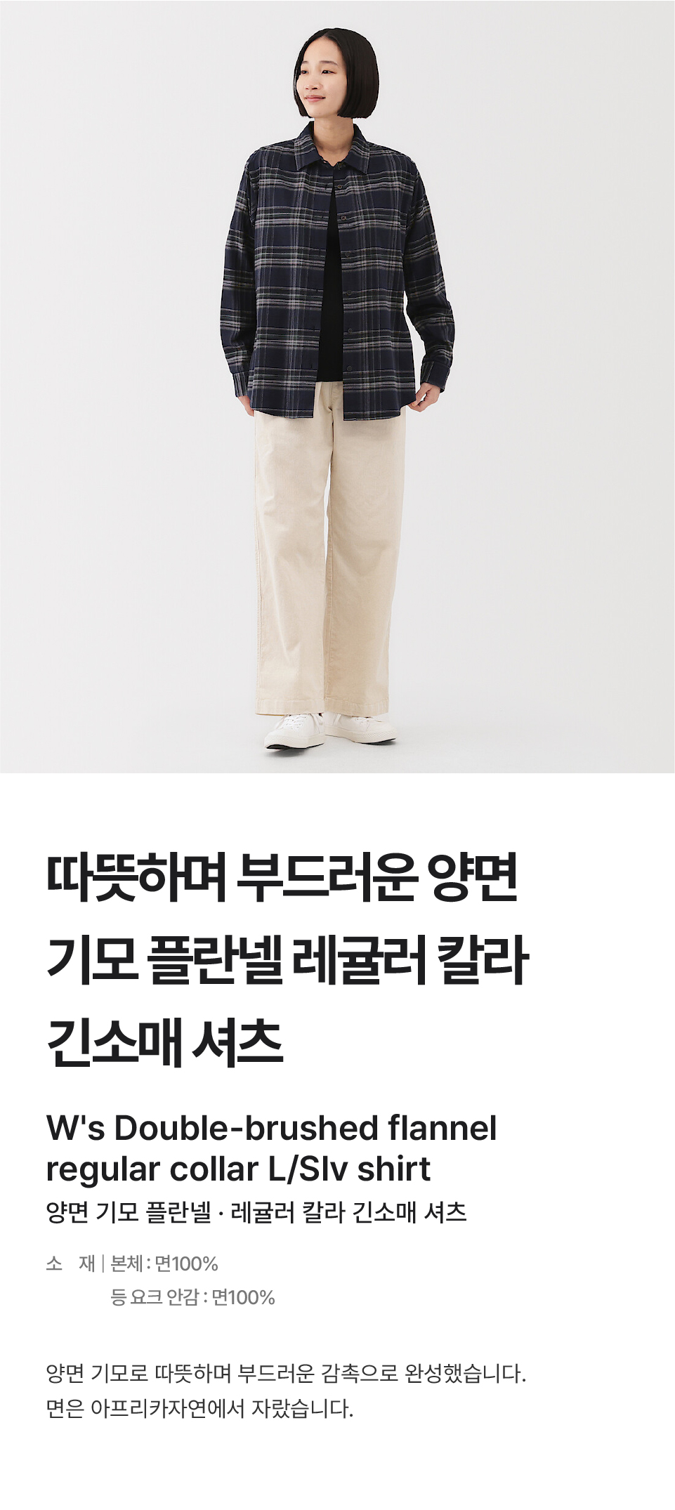 양면 기모 플란넬 레귤러 칼라 긴소매 셔츠