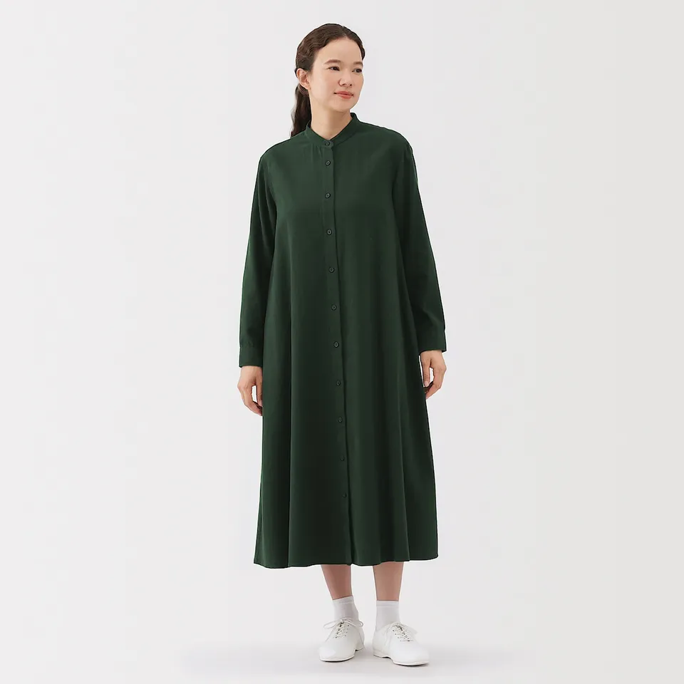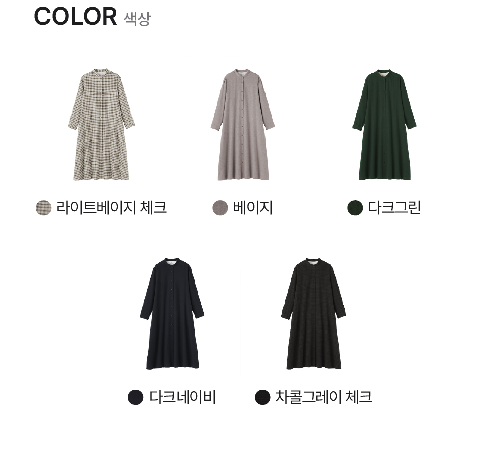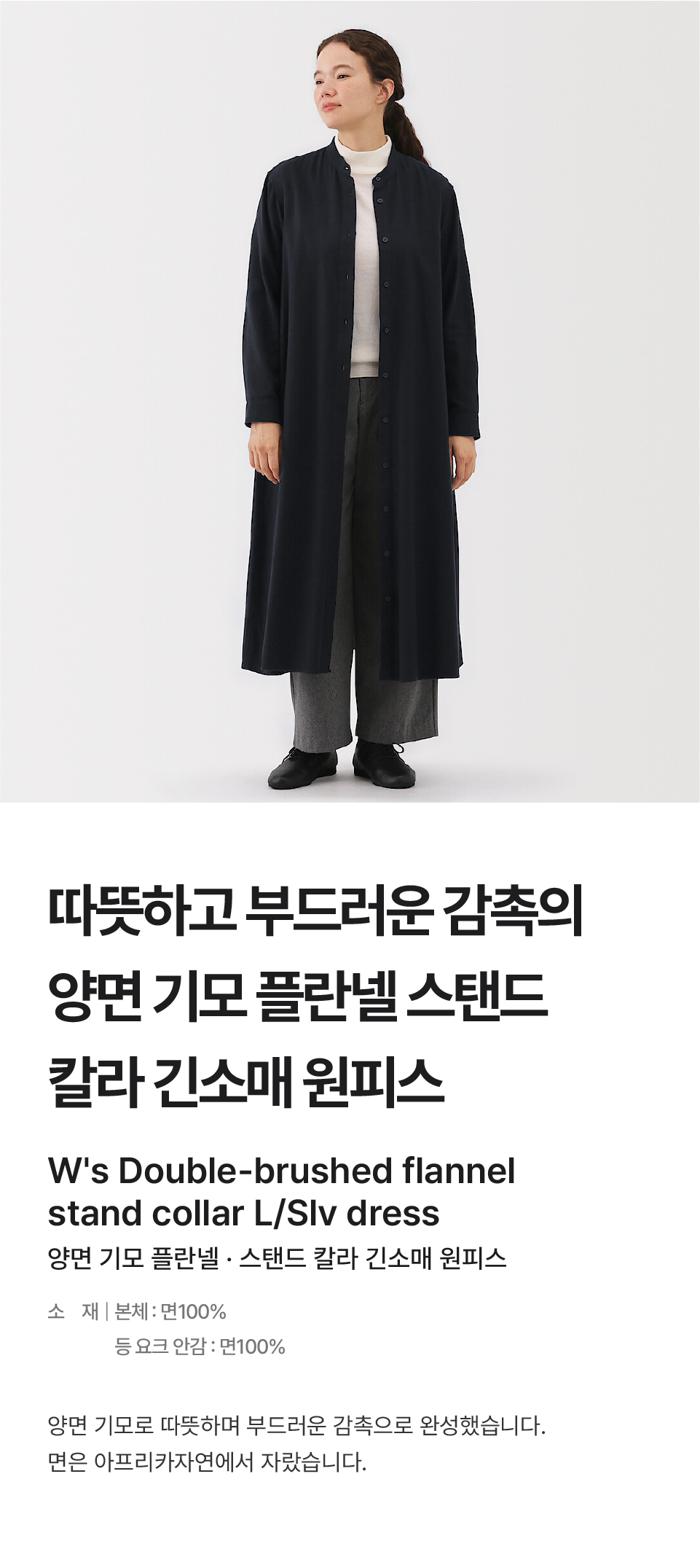 양면 기모 플란넬 스탠드 칼라 긴소매 원피스/BC2NZA5A