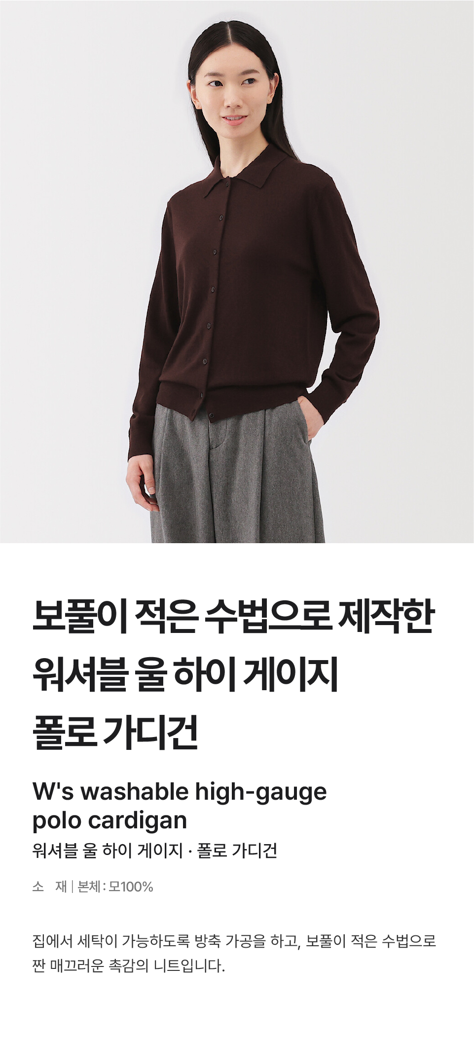 워셔블 울 하이 게이지 크루넥 가디건