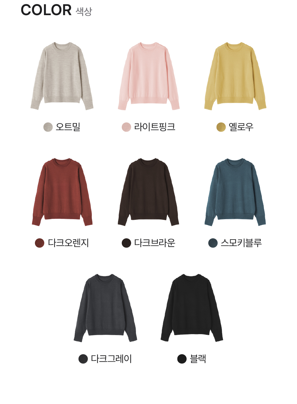 다크오렌지,옐로우,다크그레이,스모키블루,다크브라운,라이트핑크,오트밀,블랙