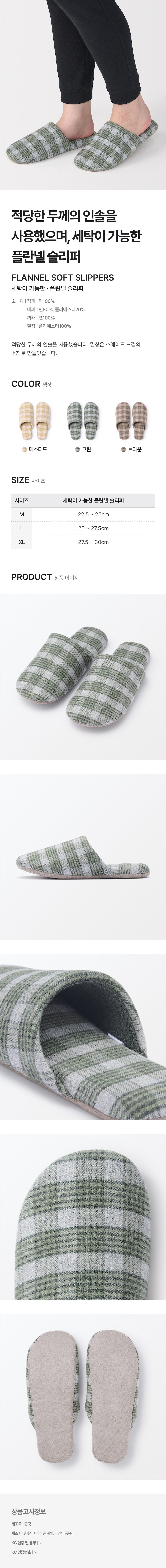 세탁이 가능한 플란넬 슬리퍼 그린 M 22.5~25cm/4550584936999