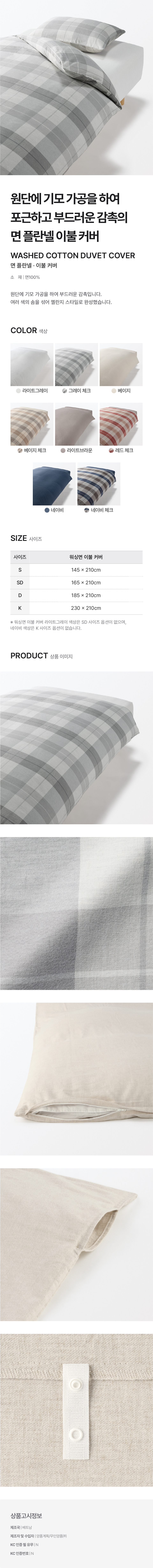 면 플란넬 이불 커버 그레이체크 S/4547315584994