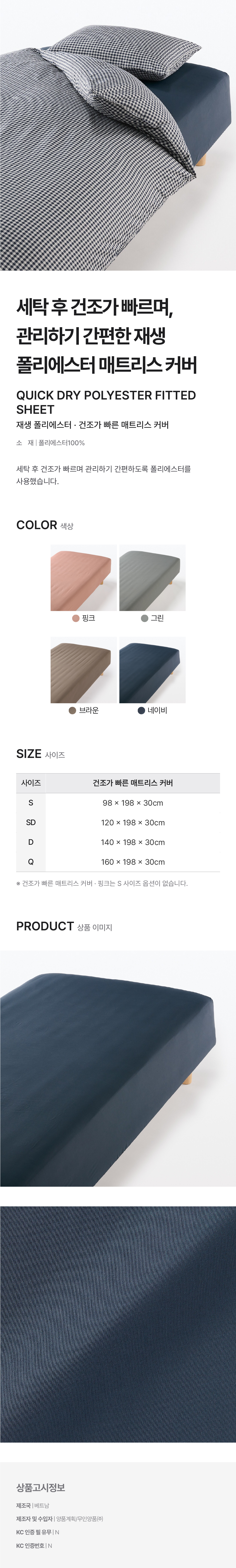 재생 폴리에스터 건조가 빠른 매트리스 커버 네이비 SD/4547315512560