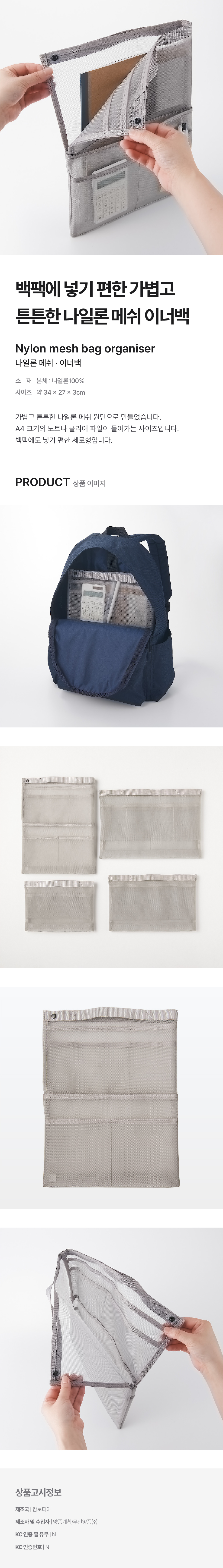 나일론 메쉬 이너백 그레이 A4 사이즈용/4550344303665