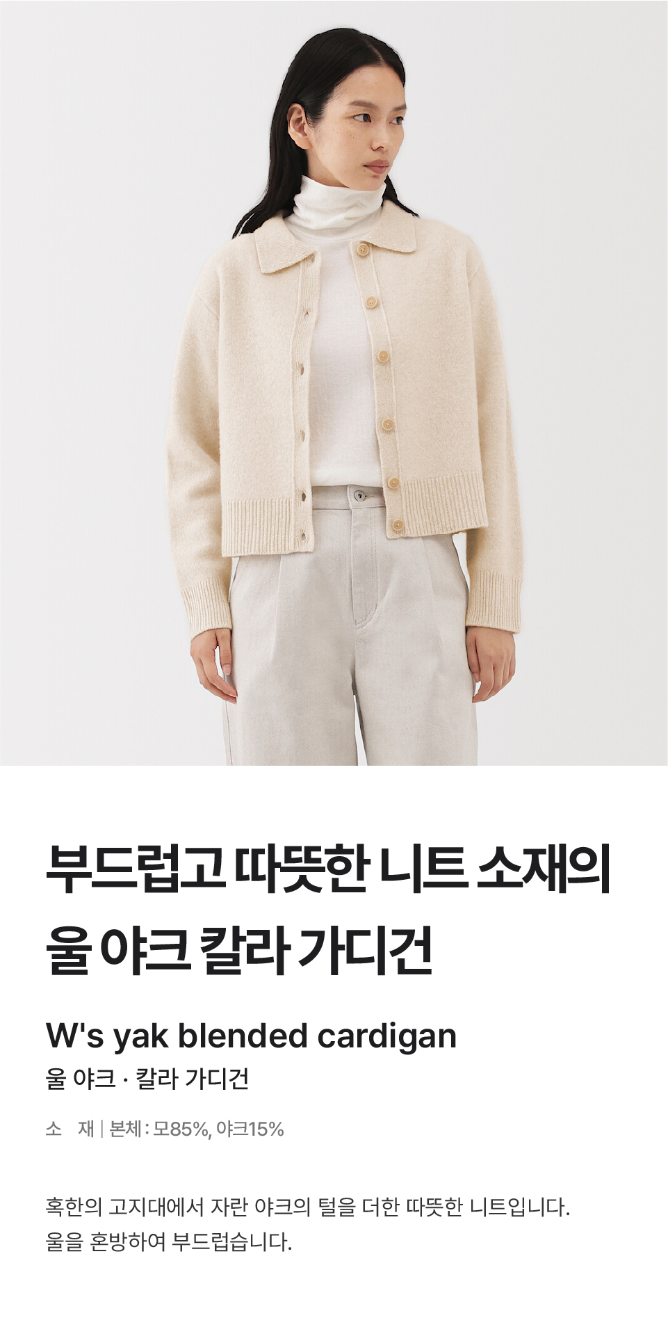 ●짙은 색상 제품은 사용 중 마찰이나 젖은 상태에서의 접촉으로 이염될 수 있습니다. 세탁할 때는 단독 세탁하여 주시기 바랍니다. ●소재 특성상, 착용하거나 세탁 및 클리닝 시 마찰에 의해 보풀, 필(Pill)이 발생합니다. 그때는 신속히 보풀 제거기 등으로 손질하여 주시기 바랍니다. ●소재의 특성상 착용 중에 제품의 섬유가 다른 곳에 붙을 수 있습니다. 그때는 브러시나 테이프 등으로 손질하여 주시기 바랍니다.