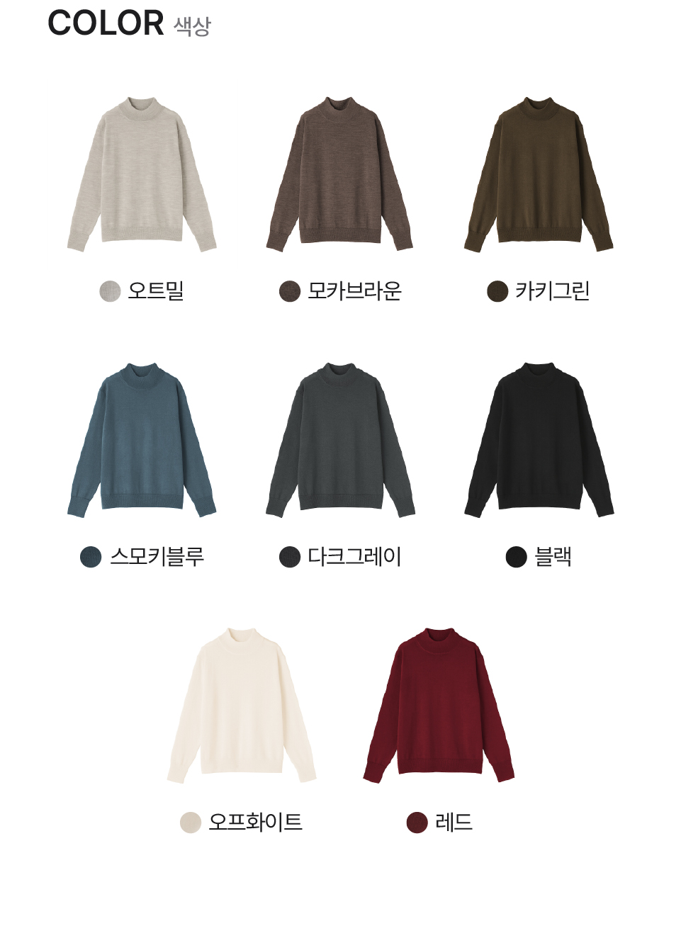 스모키블루,카키그린,레드,모카브라운,오트밀,블랙,다크그레이,오프화이트