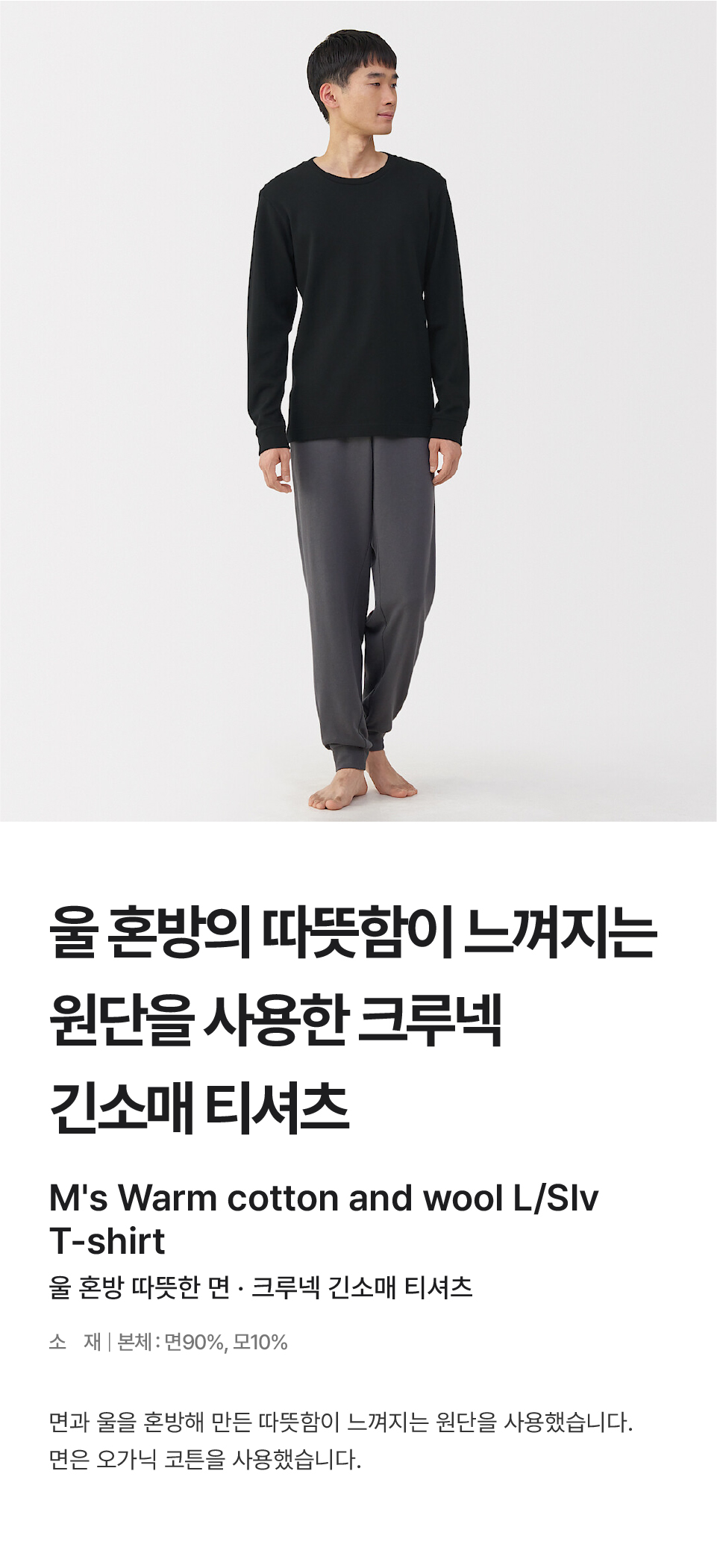 남성 울 혼방 따뜻한 면 크루넥 긴소매 티셔츠/FA1AHA5A