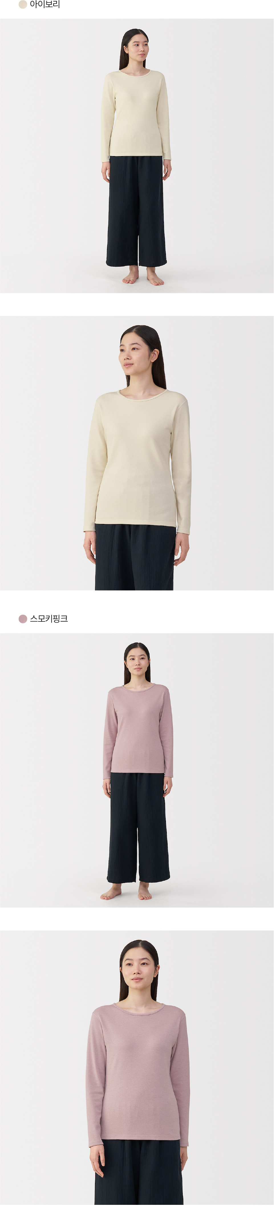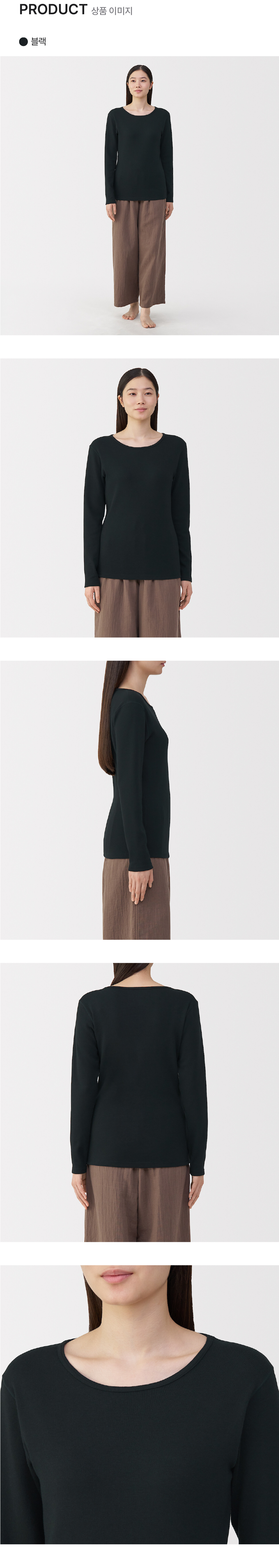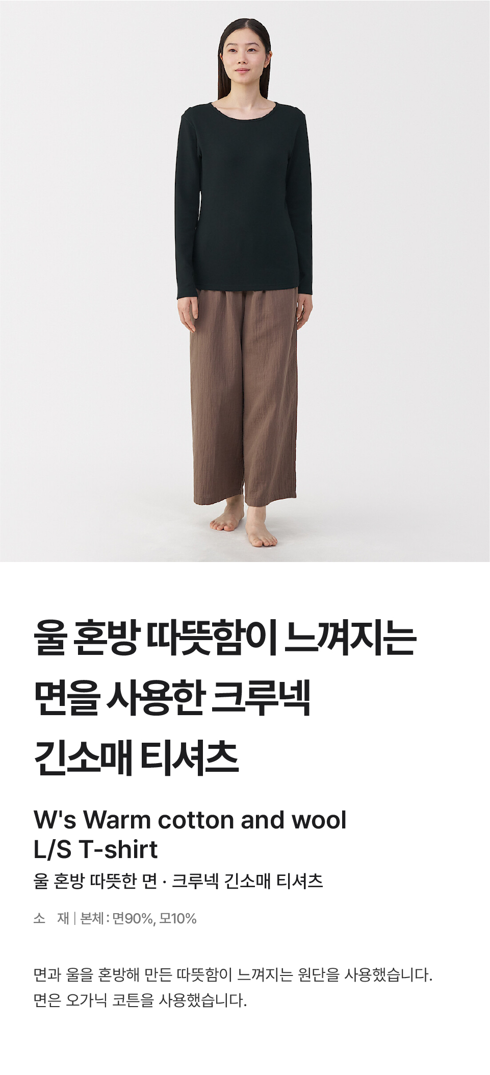 여성 울 혼방 따뜻한 면 크루넥 긴소매 티셔츠/FCD18A5A