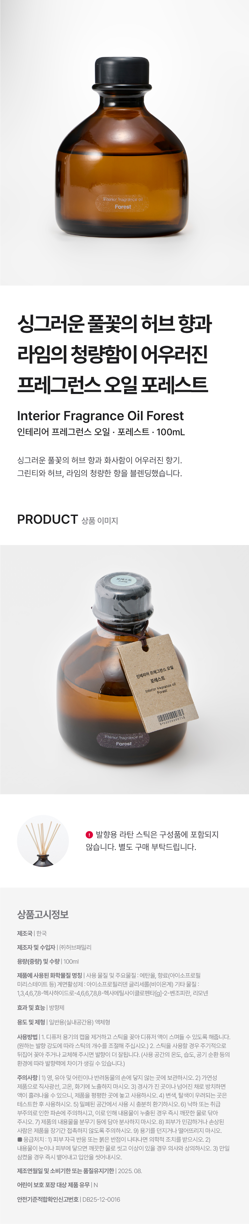 인테리어 프레그런스 오일 포레스트 디퓨저 100ml/9150000000645