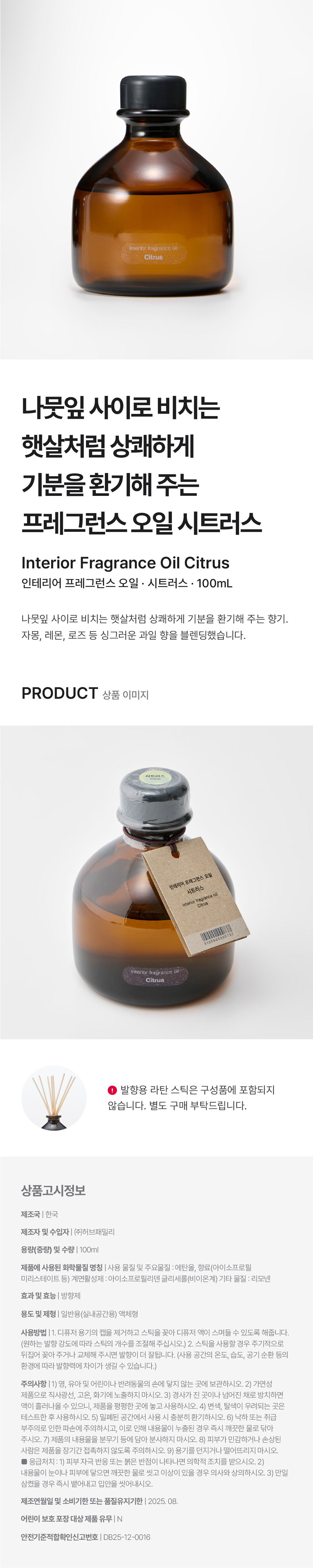 인테리어 프레그런스 오일 시트러스 디퓨저 100ml/9150000000669