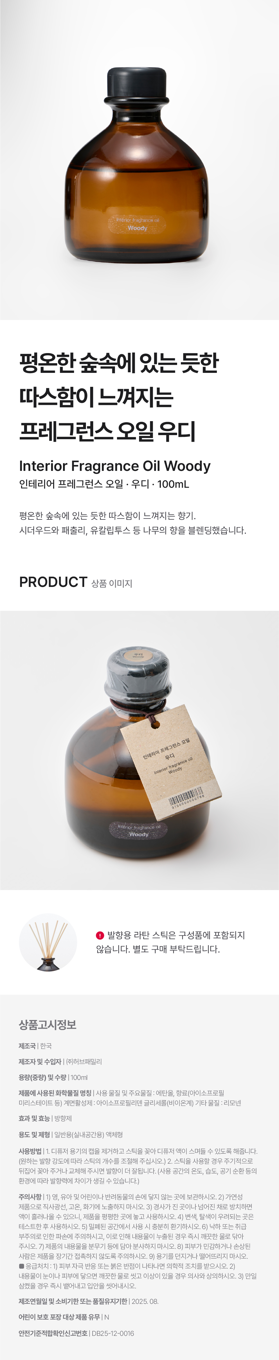 인테리어 프레그런스 오일 우디 디퓨저 100ml/9150000000690