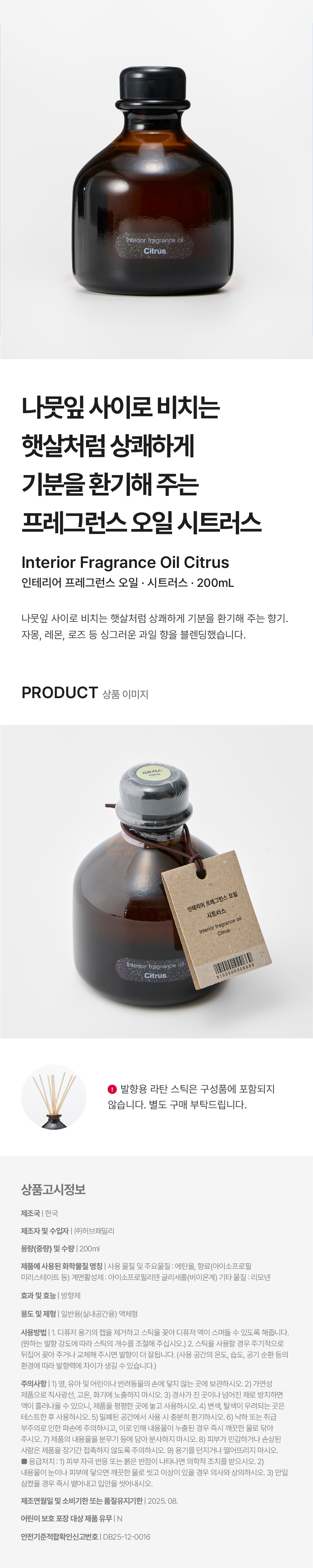 인테리어 프레그런스 오일 시트러스 디퓨저 200ml/9150000000737