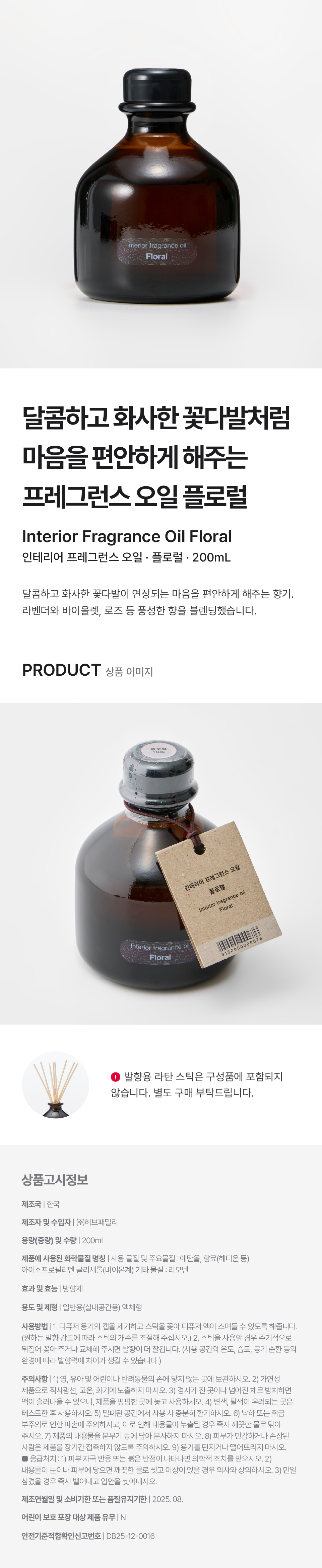 인테리어 프레그런스 오일 플로럴 디퓨저 200ml/9150000000744