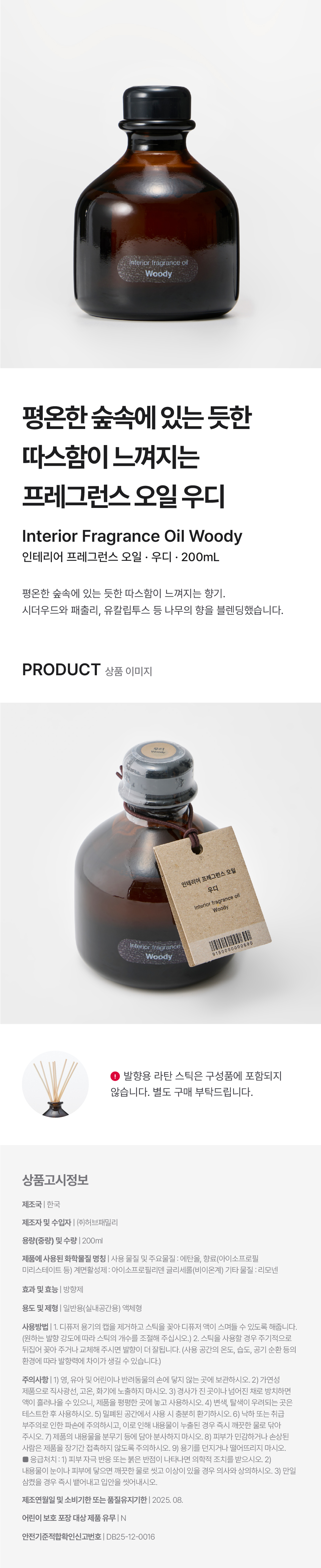 인테리어 프레그런스 오일 우디 디퓨저 200ml/9150000000768