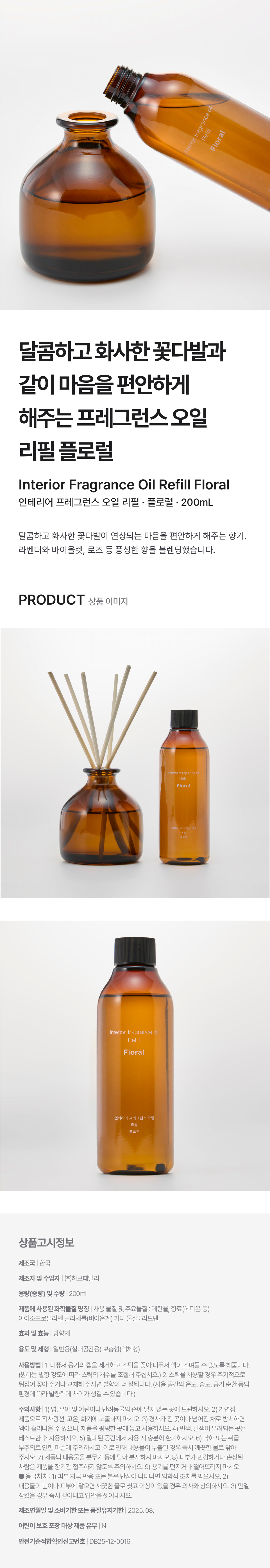 인테리어 프레그런스 오일 리필용 플로럴 디퓨저 200ml/9150000000812
