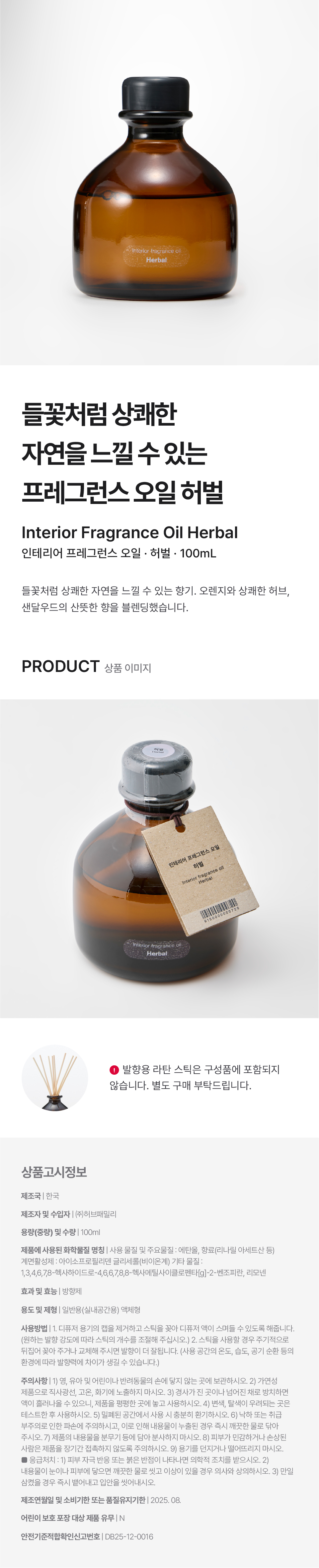 인테리어 프레그런스 오일 허벌 디퓨저 100ml/9150000000652