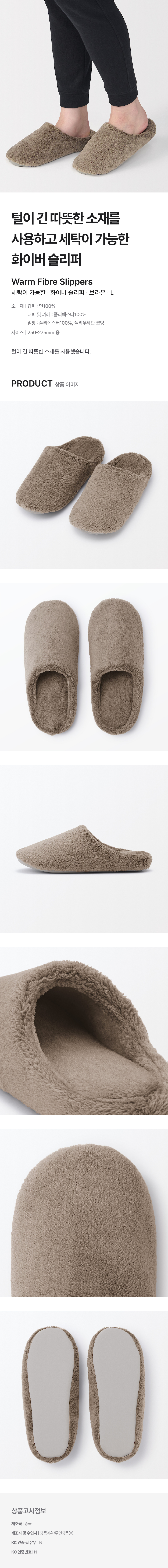 세탁이 가능한 화이버 슬리퍼 브라운 L 250-275mm/4550584936913
